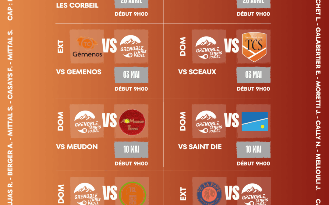 Le coup d’envoi des très attendus Championnats de France par équipes approche à grands pas ! Cette année encore, le Grenoble Tennis Padel sera représenté au haut niveau. Notre Équipe 1 s’apprête à batailler en Nationale 1, et ils vont avoir besoin de toutes vos voix pour aller chercher la victoire !